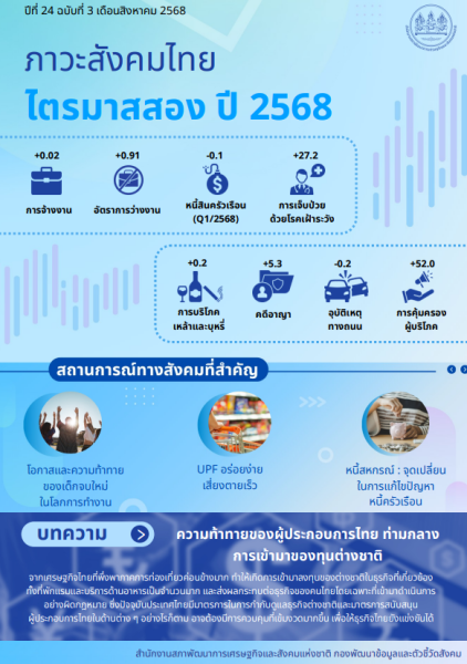 รายงานภาวะสังคมไทยในไตรมาสสอง พ.ศ. 2568 สำนักงานสภาพัฒนาการเศรษฐกิจและสังคมแห่งชาติ