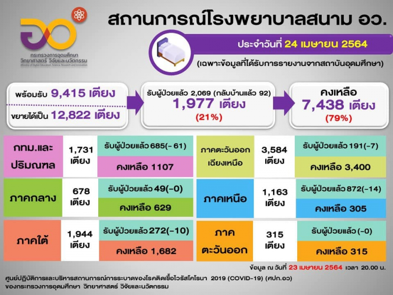 สถานการณ์ รพ.สนาม ของ อว. (24 เมษายน 2564)