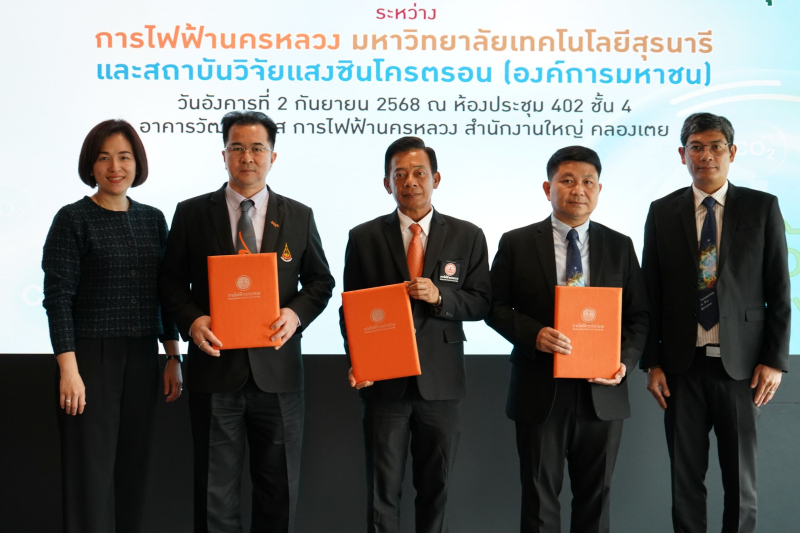 กรุงเทพมหานคร – สถาบันวิจัยแสงซินโครตรอน โดย นายสำเริง ด้วงนิล รองผู้อำนวยการสนับสนุนเทคนิคและวิศวกรรม มหาวิทยาลัยเทคโนโลยีสุรนารี โดย รศ.ดร.อนันต์ ทองระอา อธิการบดีมหาวิทยาลัยเทคโนโลยีสุรนารี และการไฟฟ้านครหลวง โดย นายพิพัฒน์ ชลอำไพ รองผู้ว่าการบริการระบบจำหน่าย ร่วมลงนามในบันทึกข้อตกลงความร่วมมือการวิจัยและพัฒนานวัตกรรมด้านการบริหารจัดการพลังงานไฟฟ้าสู่เป้าหมายความเป็นกลางทางคาร์บอน (Carbon Neutrality) และการปลดปล่อยก๊าซเรือนกระจกสุทธิเป็นศูนย์ (Net Zero Emissions) โดยมี รศ.รังสรรค์ วงศ์สรรค์ ประธานอนุกรรมการ การจัดการเทคโนโลยีดิจิทัล และนวัตกรรม การไฟฟ้านครหลวง เป็นประธานในพิธี เมื่อวันที่ 2 กันยายน 2568 ณ อาคารวัฒนวิภาส การไฟฟ้านครหลวง กรุงเทพมหานคร