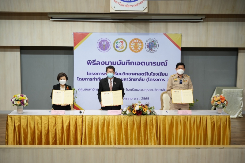 เมื่อวันที่ 23 พฤษภาคม 2655 รศ.ดร.พาสิทธิ์ หล่อธีรพงศ์ รองปลัด อว. พร้อมด้วย รศ.ดร.เกศินี วิฑูรชาติ อธิการบดีมหาวิทยาลัยธรรมศาสตร์ และ นายชาลี วัฒนเขจร ผู้อำนวยการโรงเรียนสวนกุหลาบวิทยาลัย รังสิต ได้ร่วมลงนามในบันทึกแสดงเจตนารมณ์ เพื่อร่วมมือกันในการพัฒนาโครงการ วมว. คู่ศูนย์มหาวิทยาลัยธรรมศาสตร์ เพื่อยกระดับคุณภาพการจัดการเรียนการสอน และการพัฒนาศักยภาพจของนักเรียนในโครงการ วมว ร่วมกันในทุกมิติ