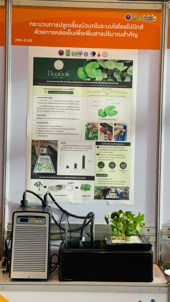 “กระบวนการปลูกเลี้ยงบัวบกในระบบไฮโดรโปนิกส์ด้วยการหล่อเย็นเพื่อเพิ่มปริมาณสารสำคัญ“ เป็นเทคนิคที่ใช้การควบคุมสภาพแวดล้อมให้เหมาะสมกับการเจริญเติบโตของบัวบก โดยเฉพาะการควบคุมอุณหภูมิด้วยการหล่อเย็น เพื่อกระตุ้นการสร้างสารสำคัญ เช่น ไตรเทอร์ปีนอยด์ (Triterpenoids) ซึ่งเป็นสารที่มีประโยชน์ต่อสุขภาพ