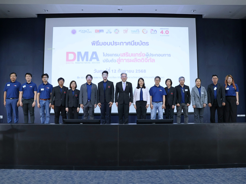 สำนักงานพัฒนาวิทยาศาสตร์และเทคโนโลยีแห่งชาติ (สวทช.) จัดพิธีมอบประกาศนียบัตรแก่ผู้ผ่านการอบรมหลักสูตร “โปรแกรมเสริมแกร่งผู้ประกอบการปรับตัวสู่การผลิตดิจิทัล (Digital Manufacturing Advisor : DMA)” รวม 51 คน ณ อุทยานวิทยาศาสตร์ประเทศไทย จ.ปทุมธานี เพื่อสร้างที่ปรึกษาด้านการผลิตดิจิทัล ช่วยหนุนผู้ประกอบการไทยก้าวสู่ Industry 4.0 อย่างยั่งยืน